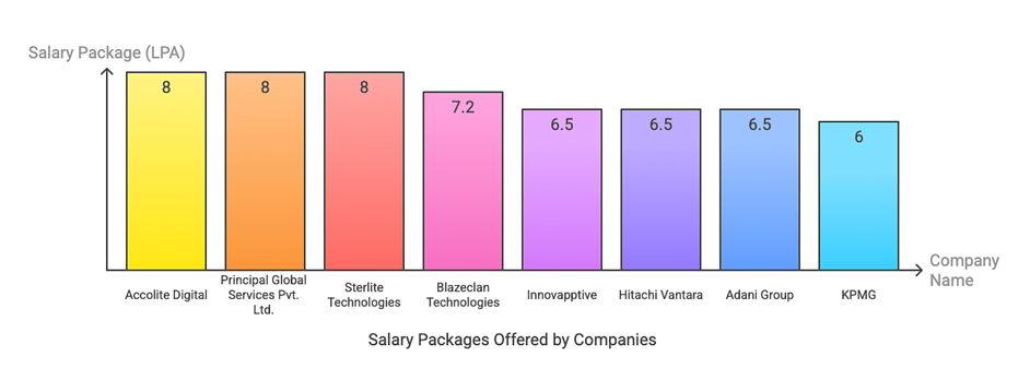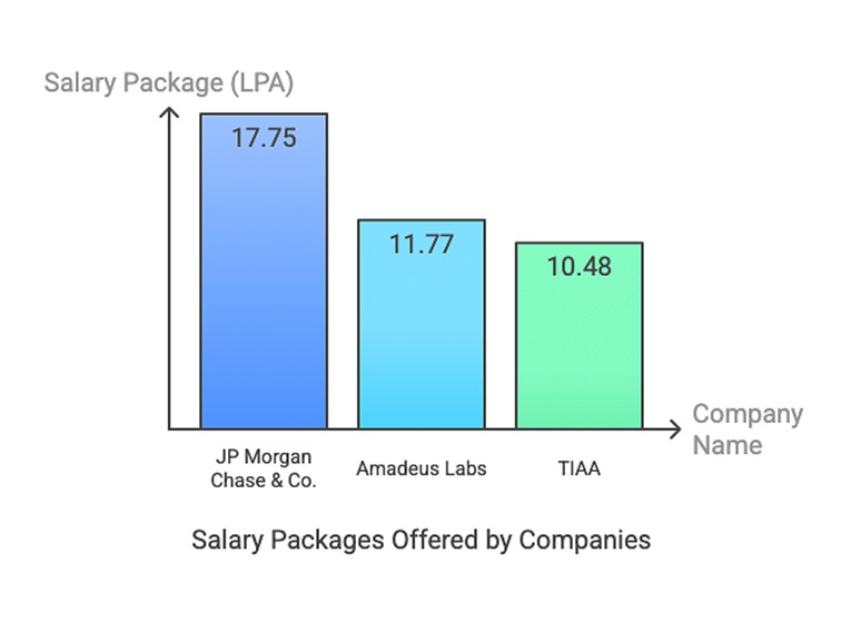 In 2024 placements, the highest package offered was ₹17.75 LPA by JP Morgan Chase, while the lowest stood at ₹4.5 LPA. The placement drive saw participation from over 200 companies, resulting in more than 900 job offers. Top recruiters included JP Morgan Chase & Co., Deloitte, Capgemini, Amazon, IBM, Bosch, Infosys, and Wipro.
